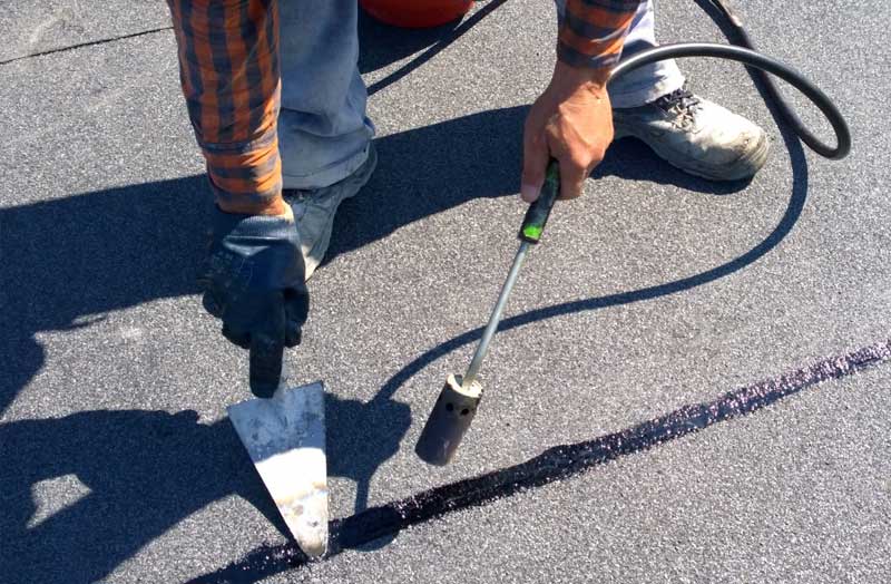 Le système consiste en la pose d’un revêtement d’étanchéité  bitumineux soudé au chalumeau. Ce procédé d’installation se fait par système monocouche ou multicouche (si plusieurs épaisseurs de membranes sont posées). L’étanchéité du toit est réalisée sur partie la courante ainsi que sur les relevés pour assurer une imperméabilité totale.